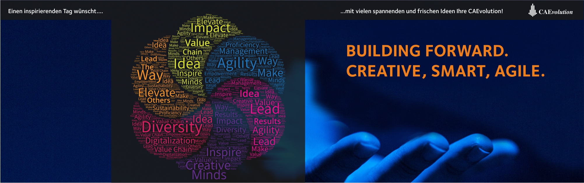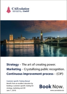 CAEvolution means Computer Aided Evolution – Rather than planning a company's activity on the premise of acquiring and owning more private property, our new generation of CAE-services focuses on having seamless access to excellent goods and outstanding services, thus being embedded in a network of experienced partners in a multilayer process and comprehensive value chain.